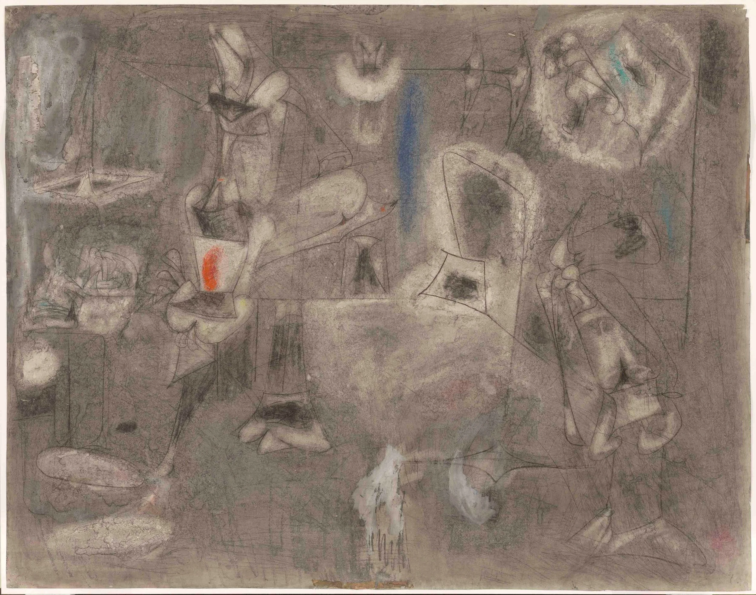 Charcoal, pastel, graphite pencil, and gouache on paper