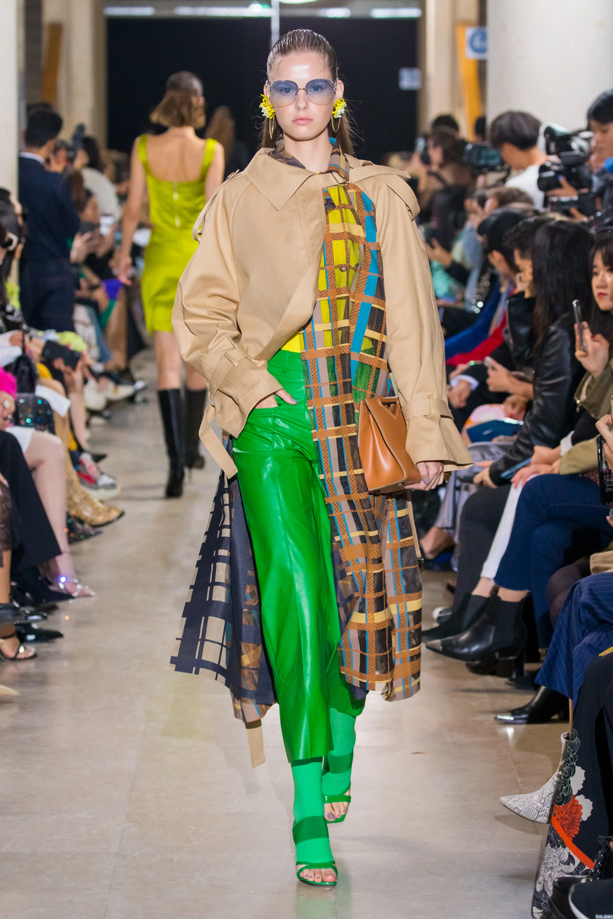 Crystal meshes overlaying silhouettes catch the light. yellow, lime green and bright orange bring tonic touches while large silver eyelets accessories some section of the collection. MASHAMA continues her collaboration with the best European fabric manufacturers. The tweed used is from the the French company Malhia Kent. Drill cotton and cyber green acetate are from Bonotto in Italy. All the yarn of jacquard is made from recycled plastic, and all the fabrics from Bonotto are eco-friendly.