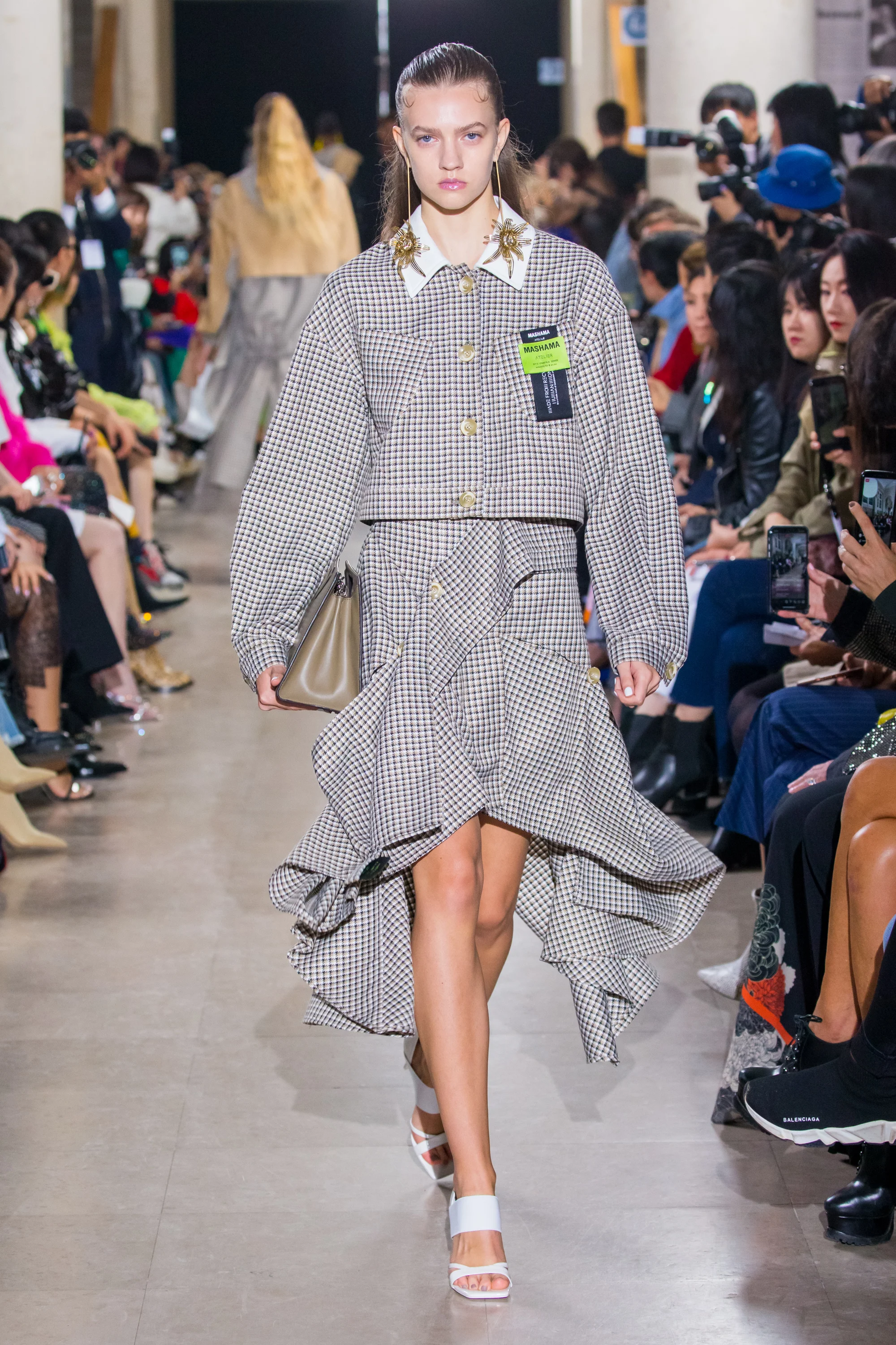 This season, the designer continues to explore multiple cuts and asymmetries. Tweed, check print lace and suits are heading to an advanced direction from the previous collection. These fabrics come together to create a surreal but life-like scene. In contrast with the previous season’s oversized silhouettes, suits are tighter on the body, highlighting the elegance and sensuality of the female figure.