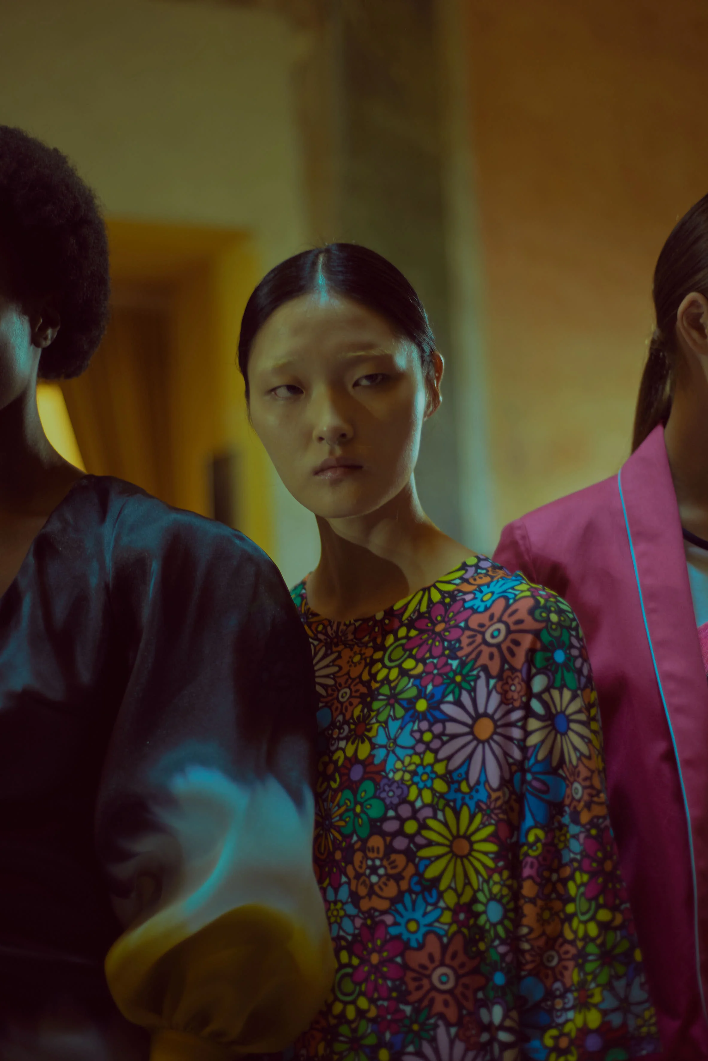 Flower power: a hymn to the joyfuljess, colour, liveliness and irony that have always distinguished the brand, thanks tp pieces made with summery puffed sleeves, printed flowers, rainbows applied on kintwear, bell-bottoms and checked jackets.