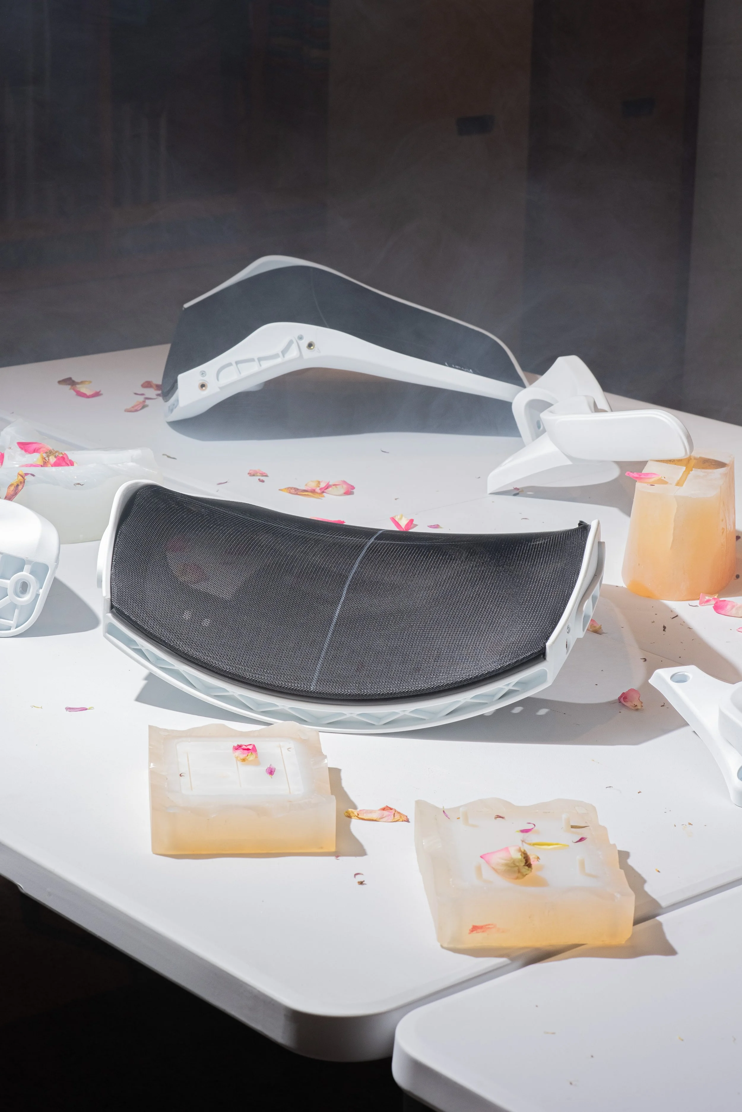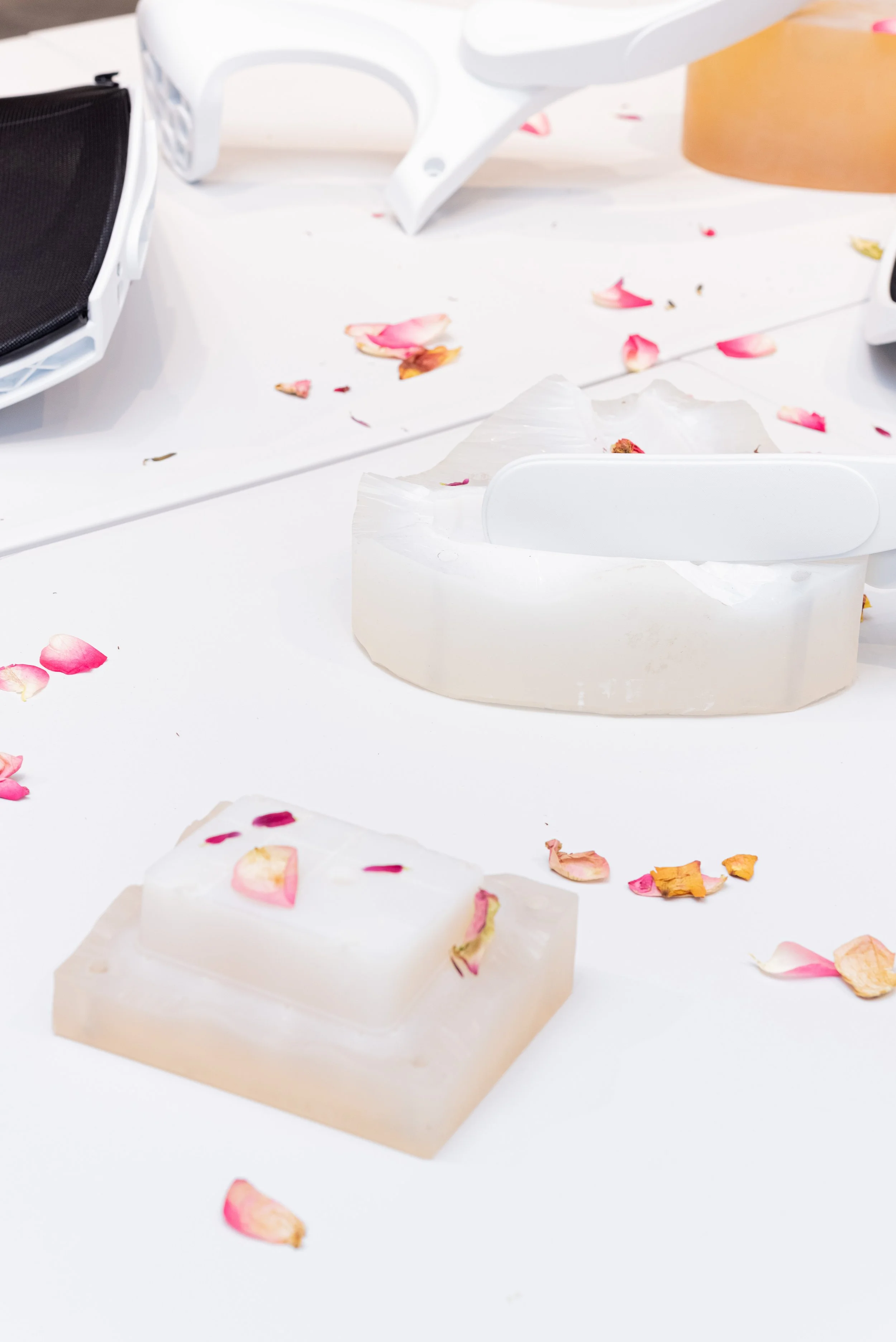 Trashy trailer park utility tables adorned with office chair parts, dried flower petals, and silicon moulds offered a critical reinterpretation and ideal banquet space framed within the cultural outskirts of USA’s mobile home phenomenon. The performance and installation, which will remain on display for the duration of Milan Art Week, transformed the MODES Milano flagship store into a Midwestern wasteland, exploring an aesthetic tendency away from its derogatory innuendo and in favour of its droney poetic potential.