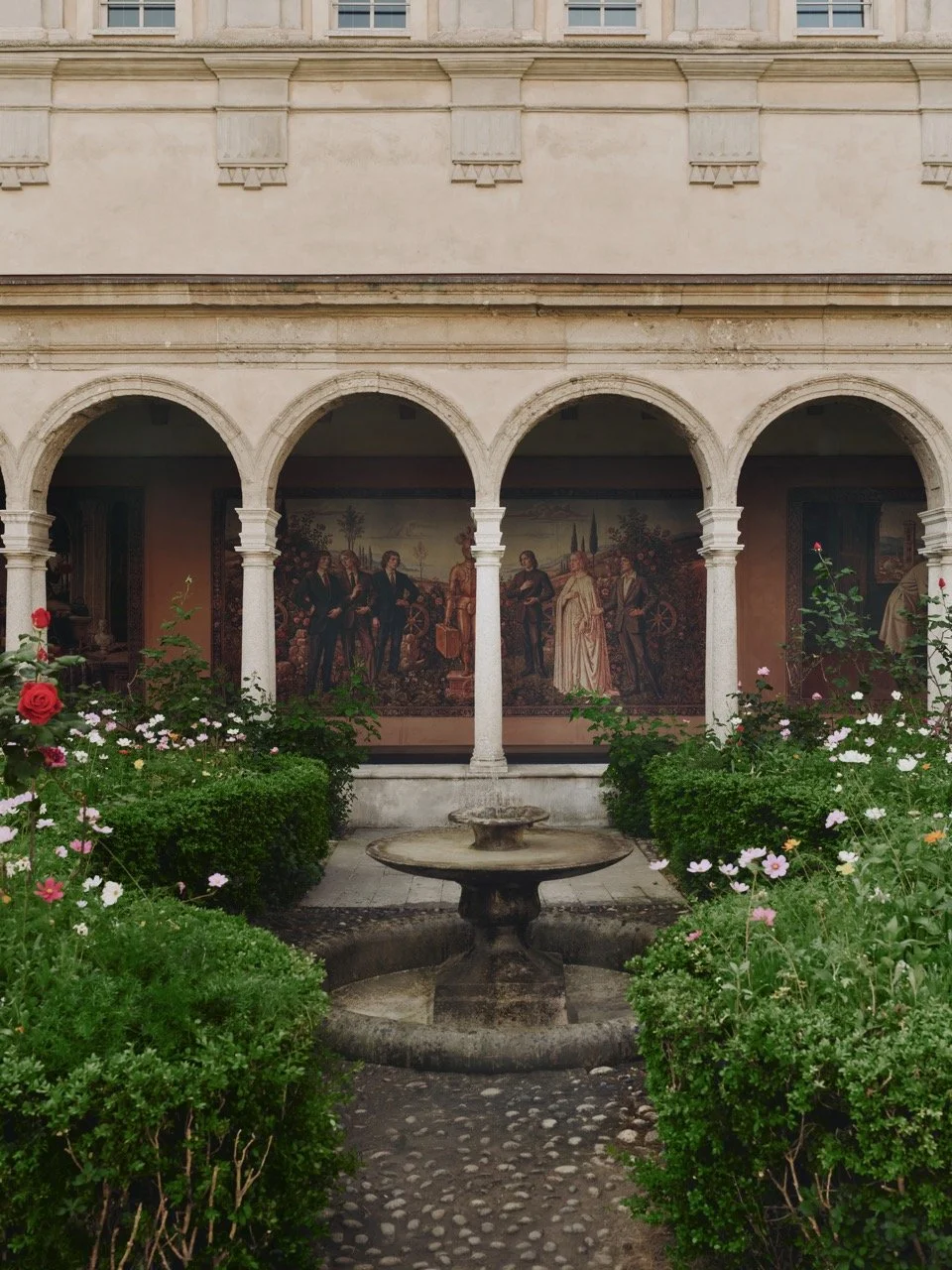 A botanical Flora installation expands into the cloister, while custom vending machines introduce an unexpected, interactive layer—dispensing identities as much as objects.