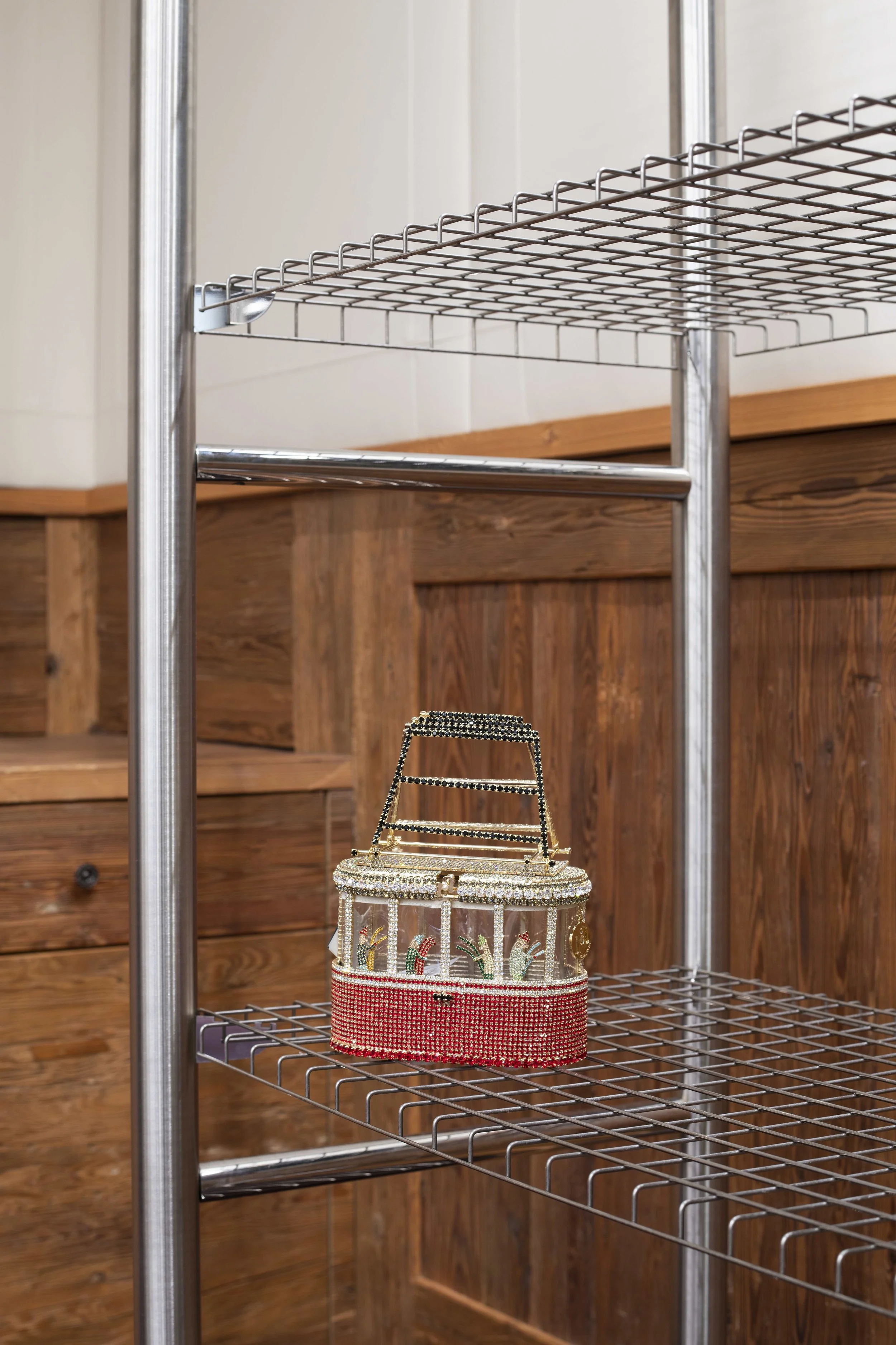 Pierre Jorge Gonzalez and Judith Haase / Gonzalez Haase AAS studio: For a few years now we have been collaborating with Modes to open stores and design all necessary spaces for the company. The strategy we developed together was not to repeat the same design on each of their new spaces, like many brands will do, but to have a unique design with specific local anchoring points. Those local or contextual points can vary widely in between the weather aspect of the city for example or the naked structures of the building where the store will be located. For Gstaad it was necessary to create a contrast due to the nature of the intervention. We did it by taking two strong directions. First by using cold slick stainless steel against the warm wooden-chalet style of the hotel, then a wire-form almost an invisible design, in contrast to the bold construction.